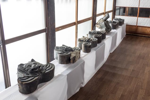 「今は室内に保管してあるのです」ということで、見せていただいたのがこちら。ずらりと見事な猫瓦が並んでいた。