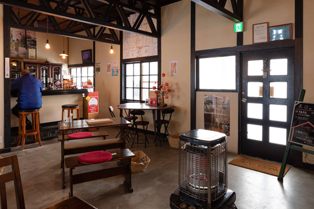 津軽五所川原駅から揺られること約35分。無人の芦野公園駅で下車します。目的地である喫茶店「駅舎」は、ホームの真横にあります。こちらの喫茶店、芦野公園駅の旧駅舎をそのまま活用しているとのことです。