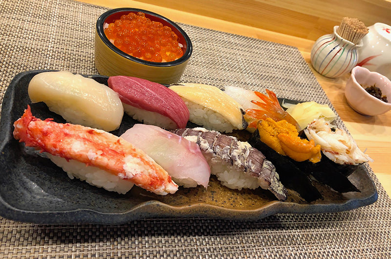 小樽運河の近くにある「すし耕」さんで「紬(つむぎ)」というセットをいただきました。北海道のネタを中心に、10種のにぎり+プチいくら丼が付いて税込4,900円!