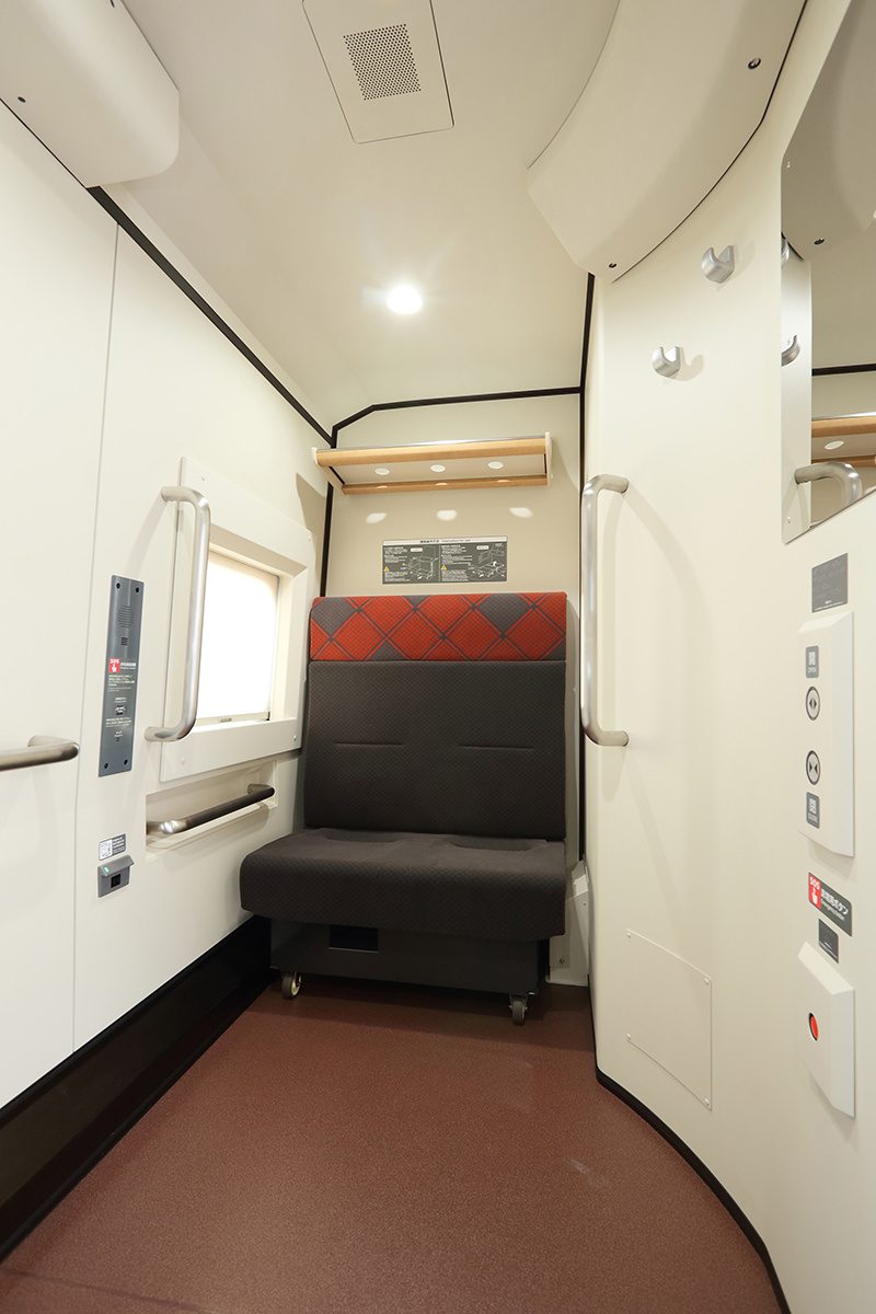 当時は、多目的室から近い座席を予約して乗車することが多かったです。ただ、多目的室はおからだの不自由な方の利用が優先なので、いつでも空いているわけではありません。予約もできないため、利用するには車掌さんに鍵を開けてもらう必要があります。