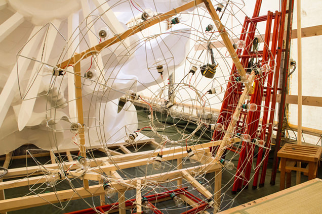 ねぶたの中に入っているのは針金とLED。これだけ見ると、まるで現代アートのよう